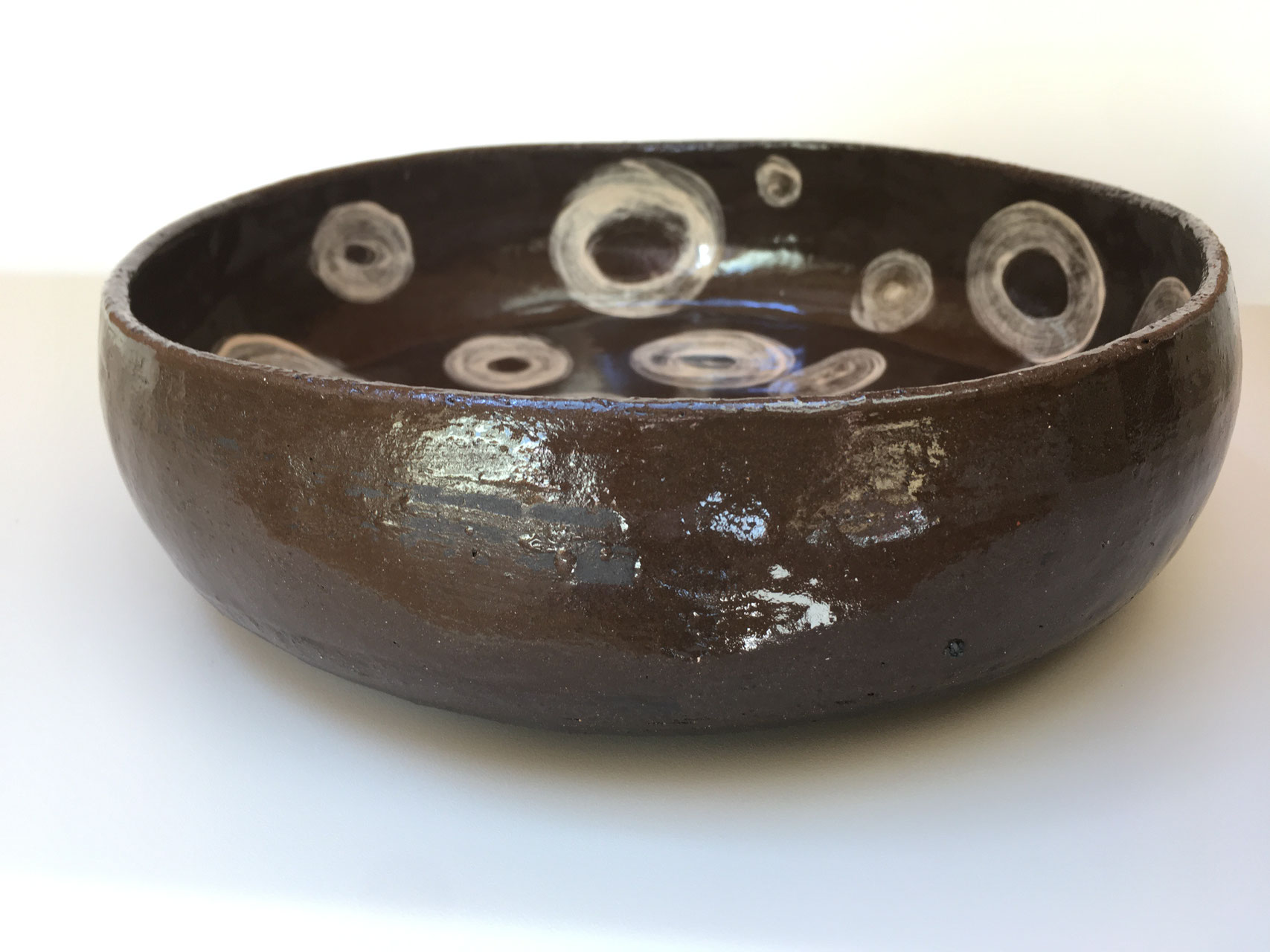 helle Irdenware mit schokoladenbrauner Glasur, ca.8cm hoch, ca.27,5cm Durchmesser