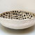 flache Schale mit matt-glänzend Kontrast durch dunkle Glasur innen und dunkel glänzendem Punktornament auf rauhem Ton aussen